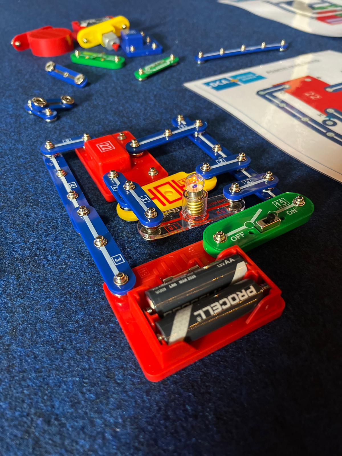 Ze konden een miniatuur muurtje bouwen met bakstenen en cement. De collega’s van DCA Technics maakte een schakelpaneel waar de kinderen al spelenderwijs het één en ander rond elektrische schakelingen konden ontdekken. De collega’s bouwden ook een sanitaire proefopstelling waar men kon leren hoe je afvoerbuizen aan elkaar zet.